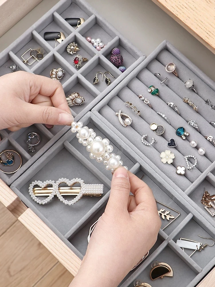 3Pcs Fashion Drawer Velvet Jewelry Organizer Tray Ring Bracelet Gift Box Jewlery Storage Earring Holder Jewelry Display Case