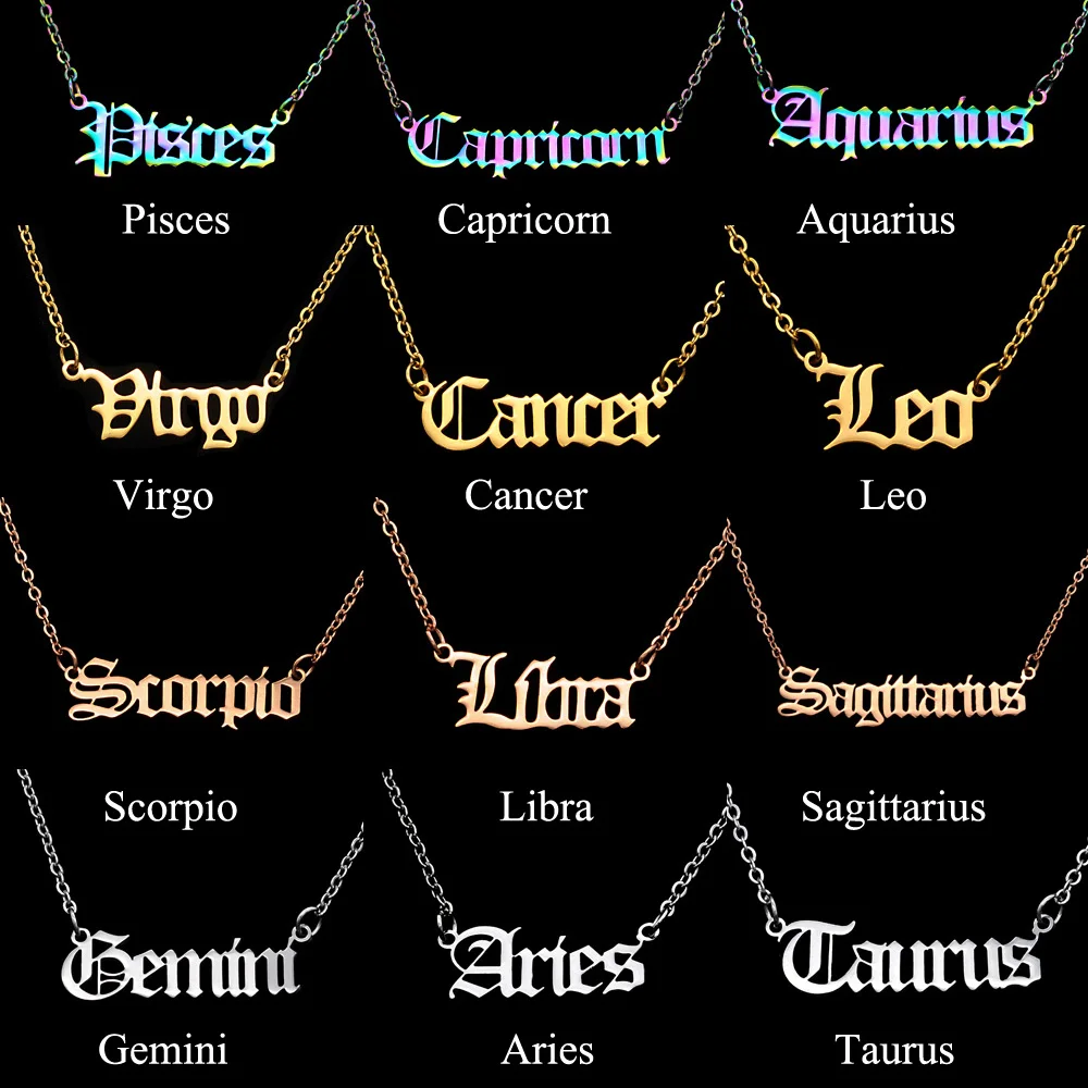 12pcs/set Wholesale 100% Stainless Steel Old English Zodiac Letter Necklace for Women Aries Horoscope Jewelry Fashion Necklaces