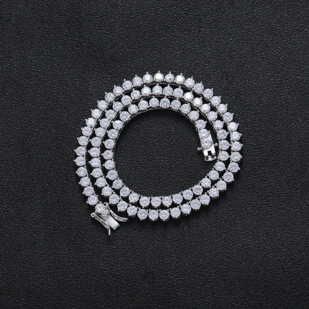 Bling Bling 4mm 3 Prong tennis chain Iced Out AAA Cubic Zirconia brass setting Tennis Chain Necklace BC212