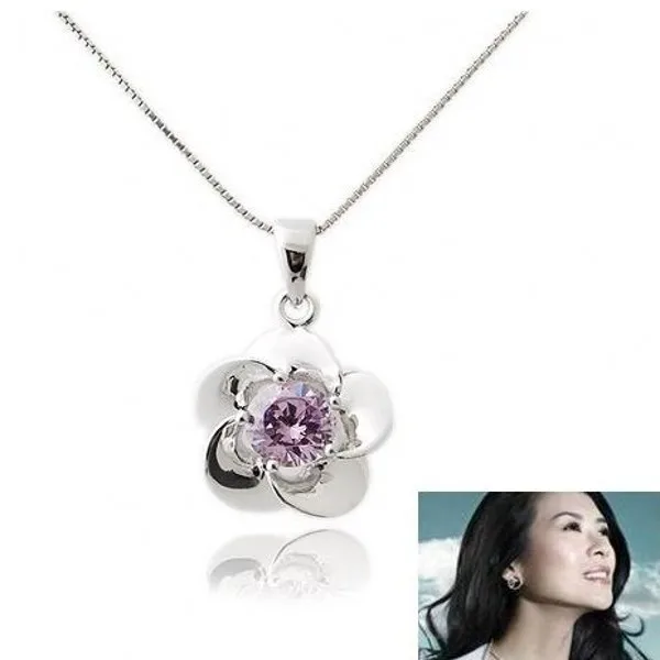 2021 new high quality purple flower-shaped zircon pendant S925 silver necklace suitable for couple gifts