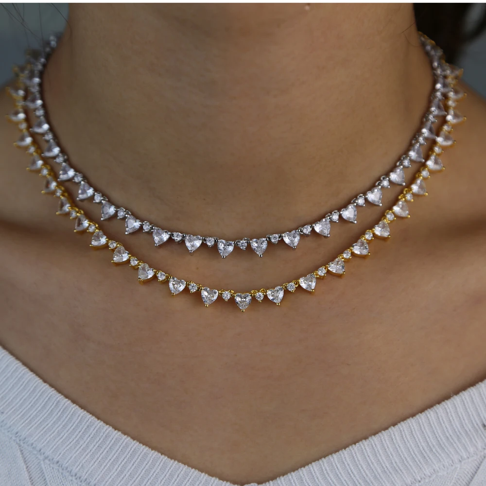 2022 Lover Valentine's Day Gift For Girlfriend Sparking Bling 5A Round Heart Cubic Zirconia Cz Tennis Choker Necklace