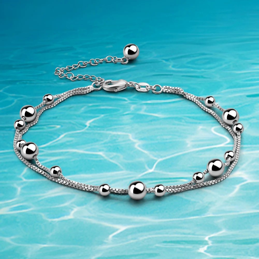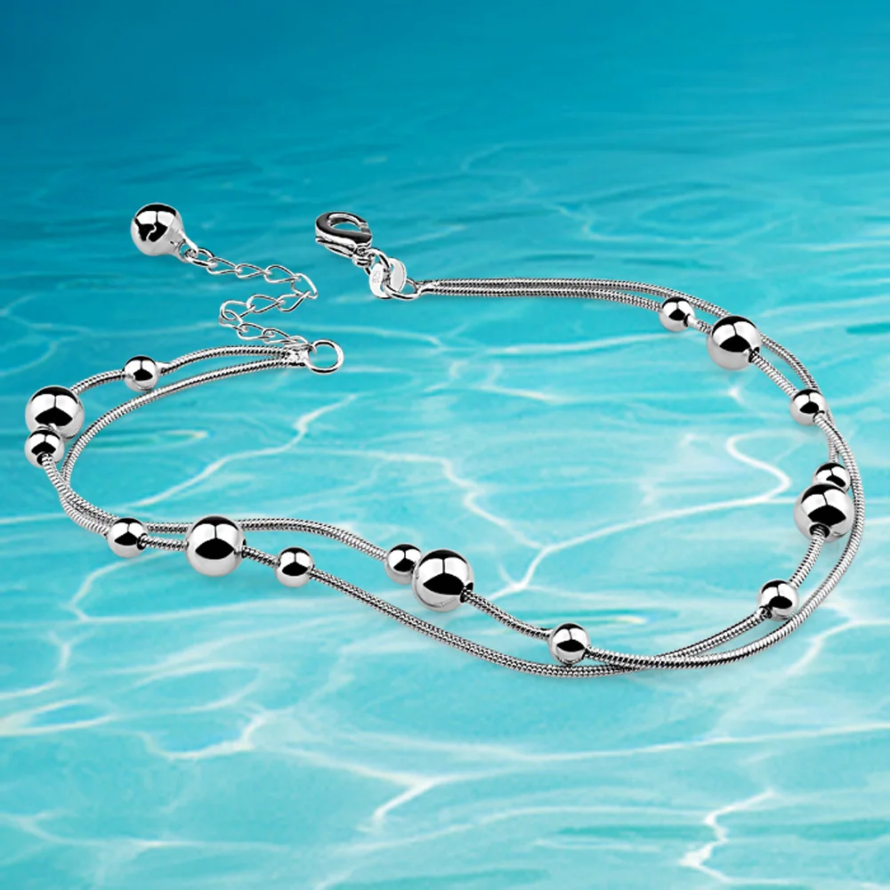 Anklets!Fashion Anklet for Women Chain 925 Sterling Silver Female Simple Foot Jewelry Leg Ankle Bracelet Double Round Bead Girl