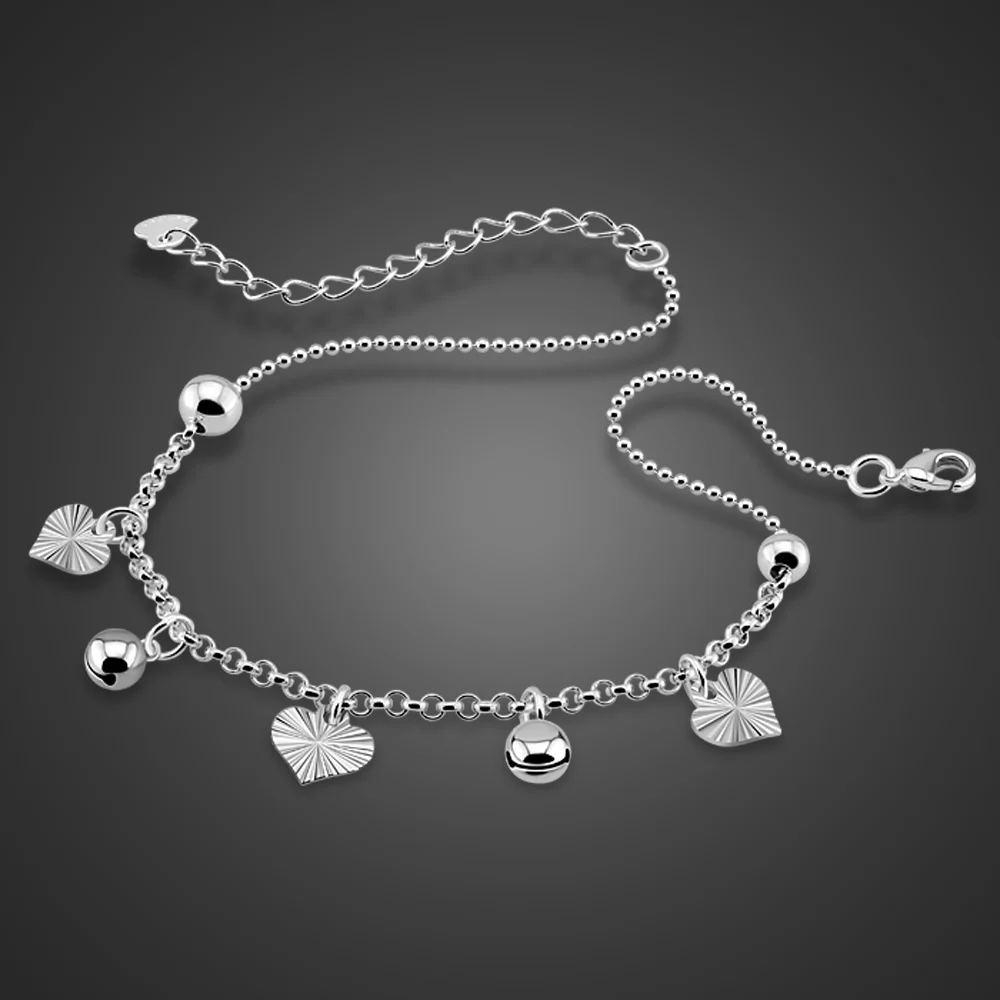 100%925 Sterling Silver Simple Heart Women Anklets Barefoot Crochet Sandals Foot Jewelry Leg On Foot Bracelets
