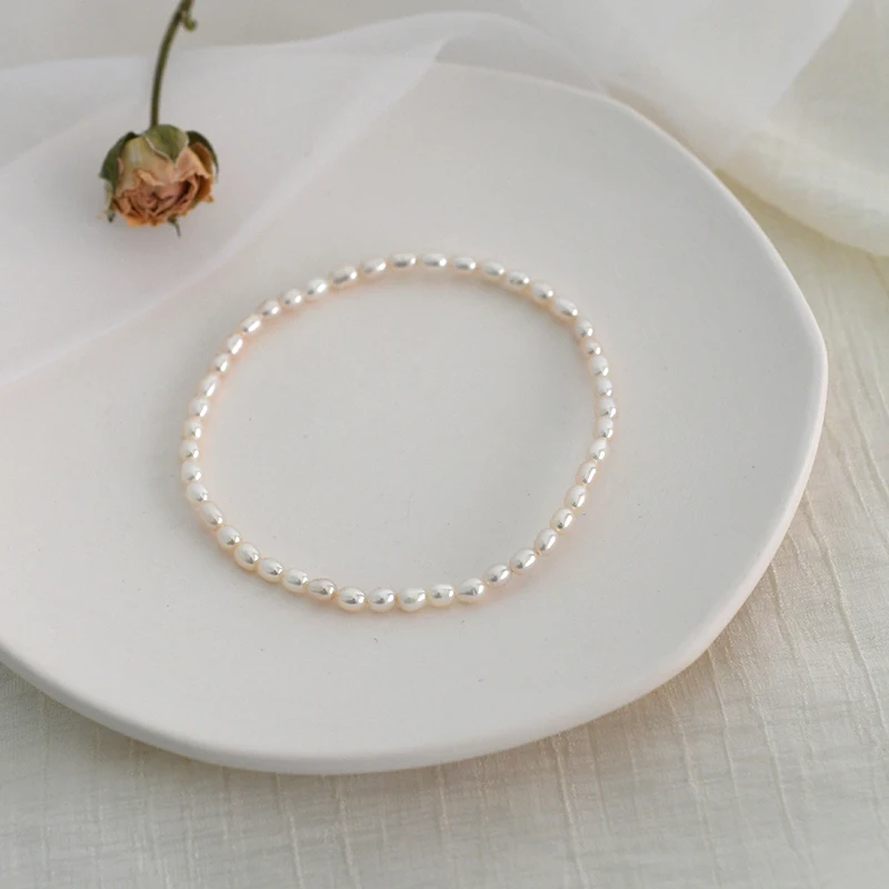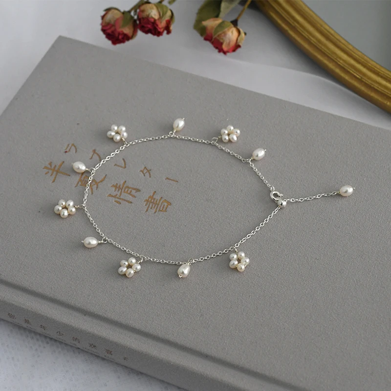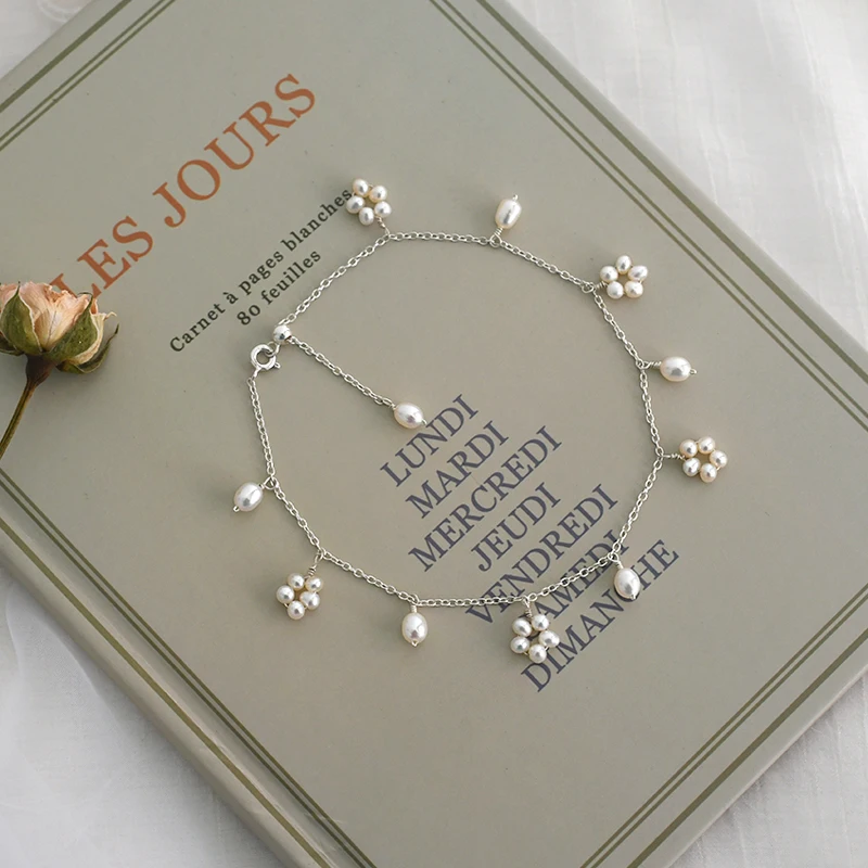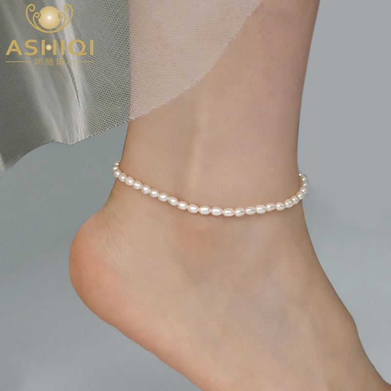 ASHIIQI Natural Freshwater Pearl Anklet for Women Real 925 Sterling Silver Handmade Jewelry Wedding