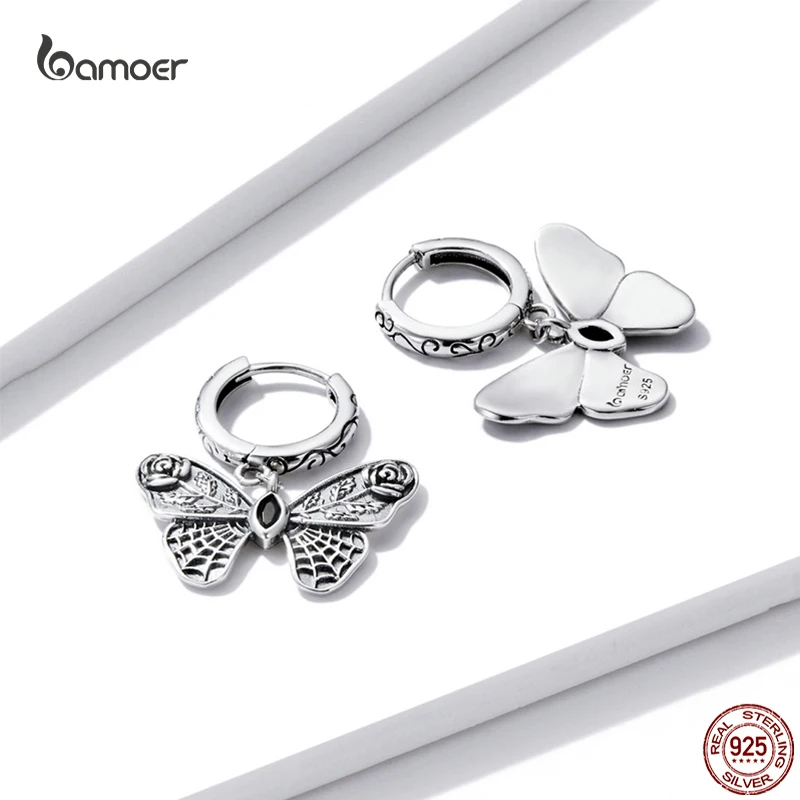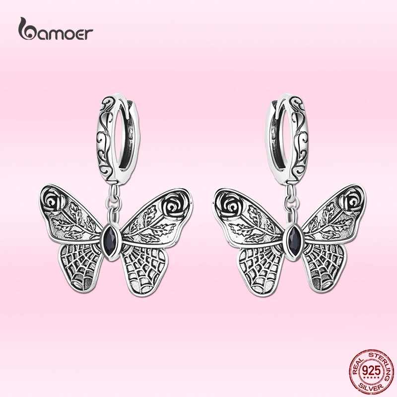 Bamoer 925 Sterling Silver Vintage Realistic Butterfly Ear Buckles Animal Drop Earrings for Women Fine S925 Anniversary Jewelry