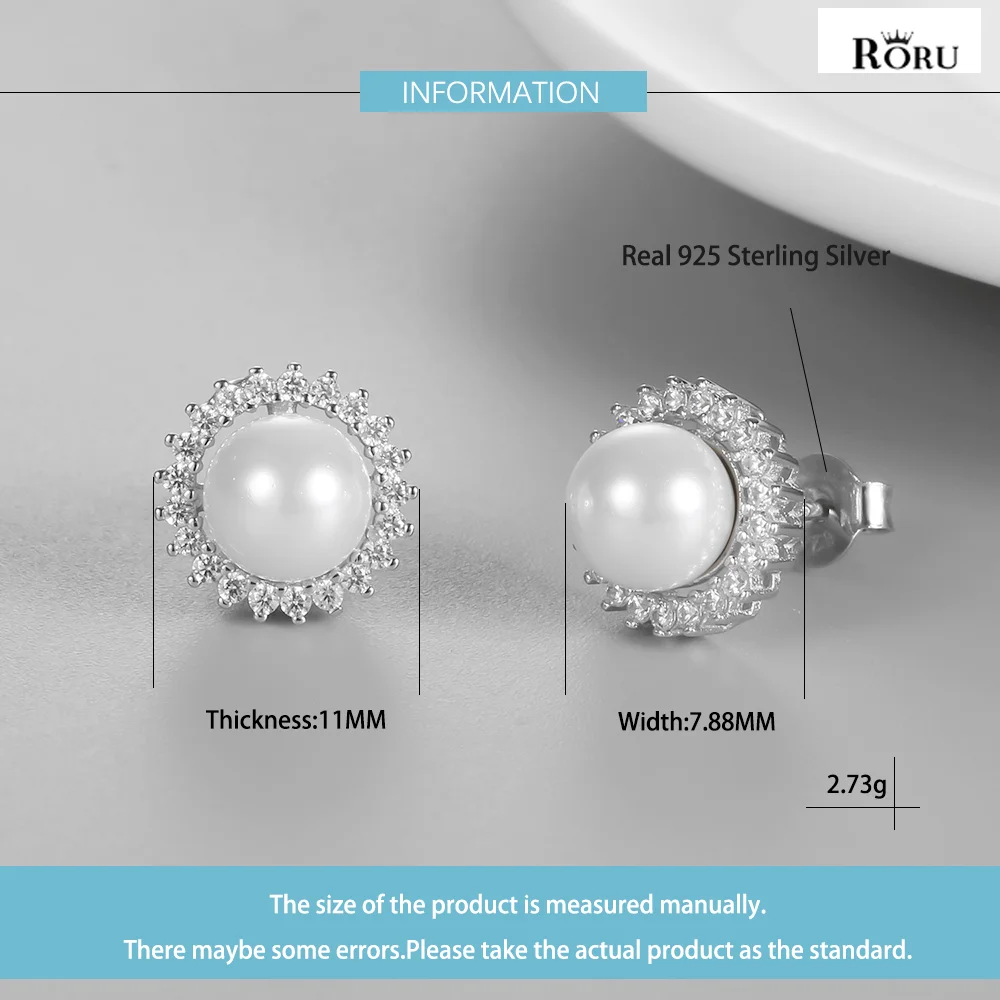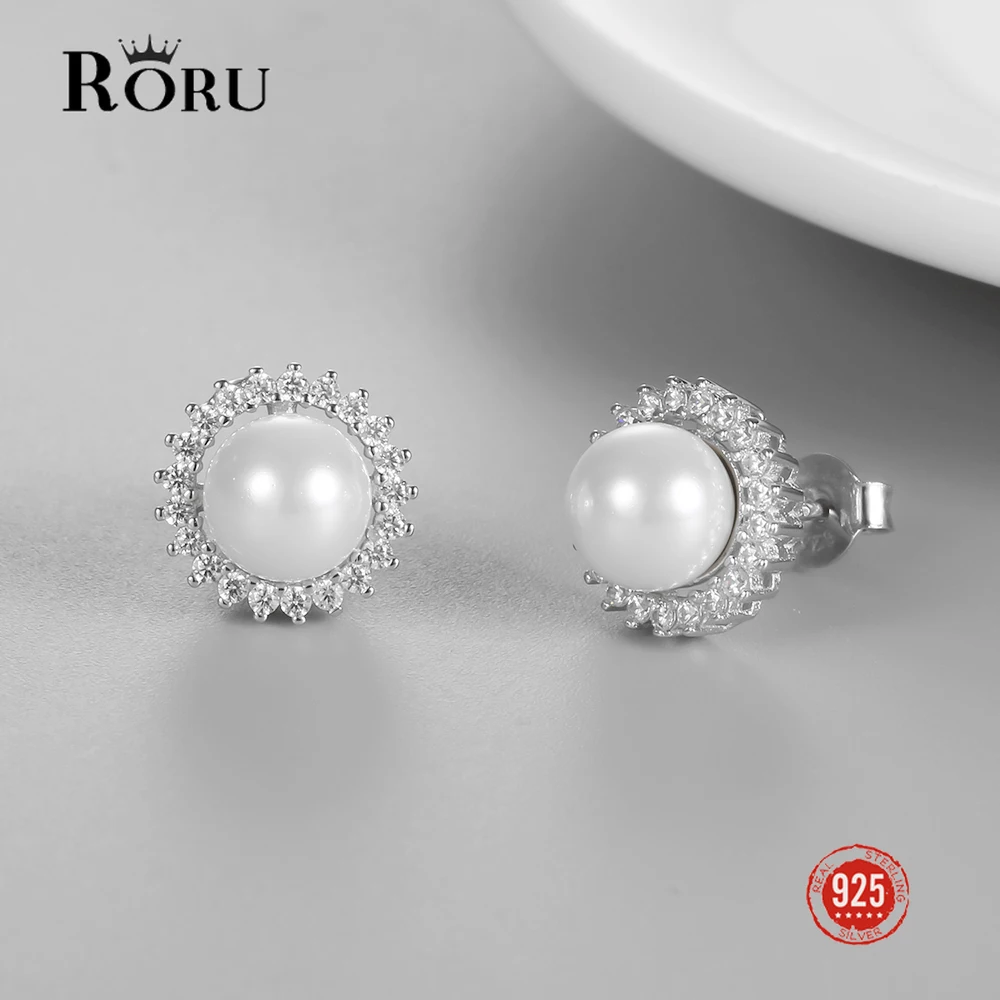 925 Sterling Silver Stud Earrings Natural White Pearl Round Zircon Ear Jewelry Shiny Luxury Earrings for Women