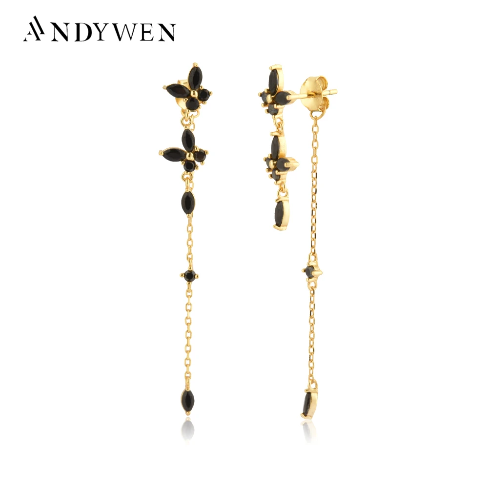 ANDYWEN 925 Sterling Silver Gold Butterfly Zircon Chain Drop Earring Piercing Pendiente 2021 Fashion Women Jewelry Gift Luxury