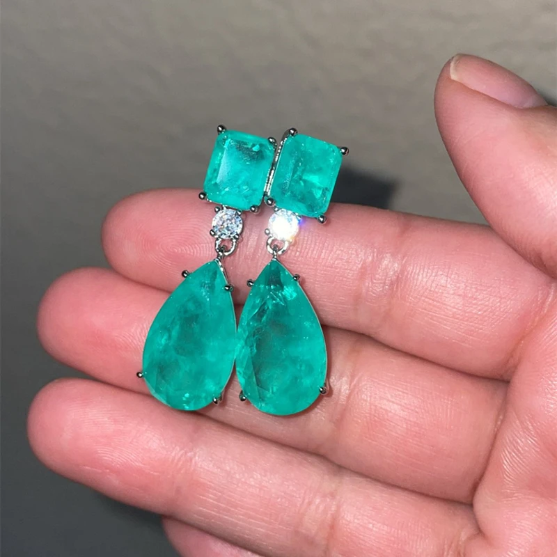 2022 Luxurious 925 Sterling Silver High Quality Water Droplets Emerald Gemstone Drop Earrings Women Cocktail Party Fine Jewelry