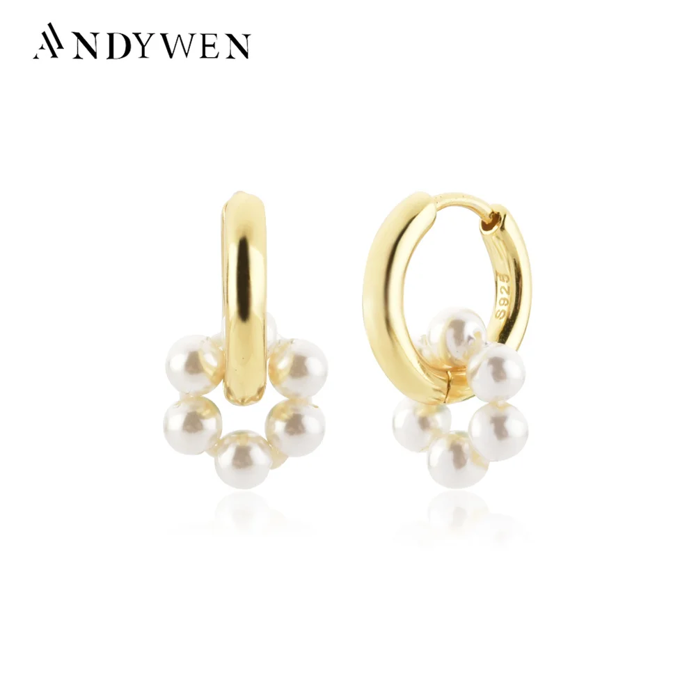 ANDYWEN 925 Sterling Silver 10mm Pearl Circle Hoops Women Clips Pendiente 2022 New Fine Jewelry Luxury Loops Wedding Gift