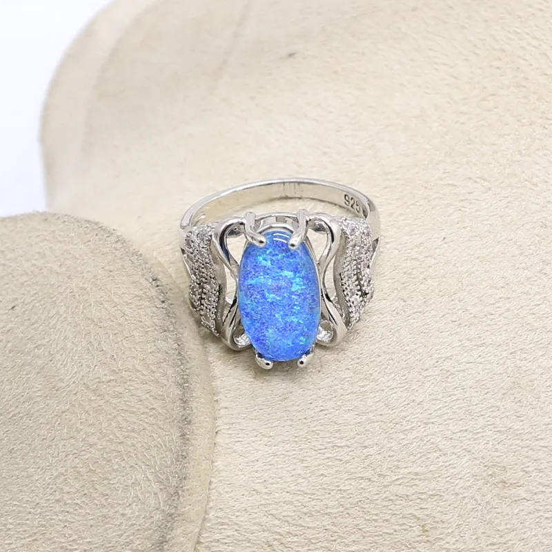 925 Sterling Silver Blue Opal Bridal Jewelry Sets For Women Necklace Earrings Pendants Ring Sets For Birthdays Gift