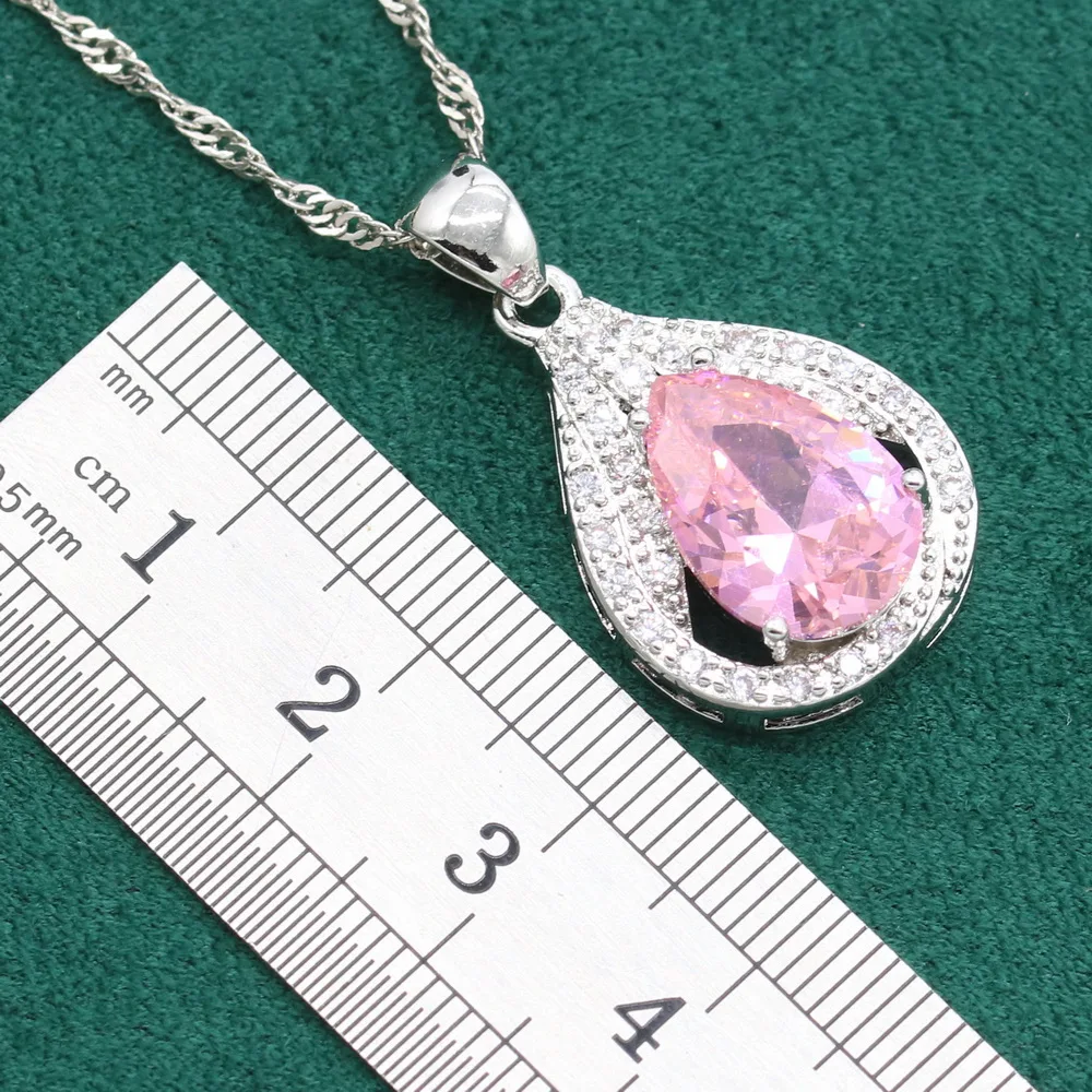 925 Sterling Silver Jewelry Sets For Women Green Blue Pink Zircon Bracelet Ear Clip Earrings Necklace pendant Ring Free Gift Box