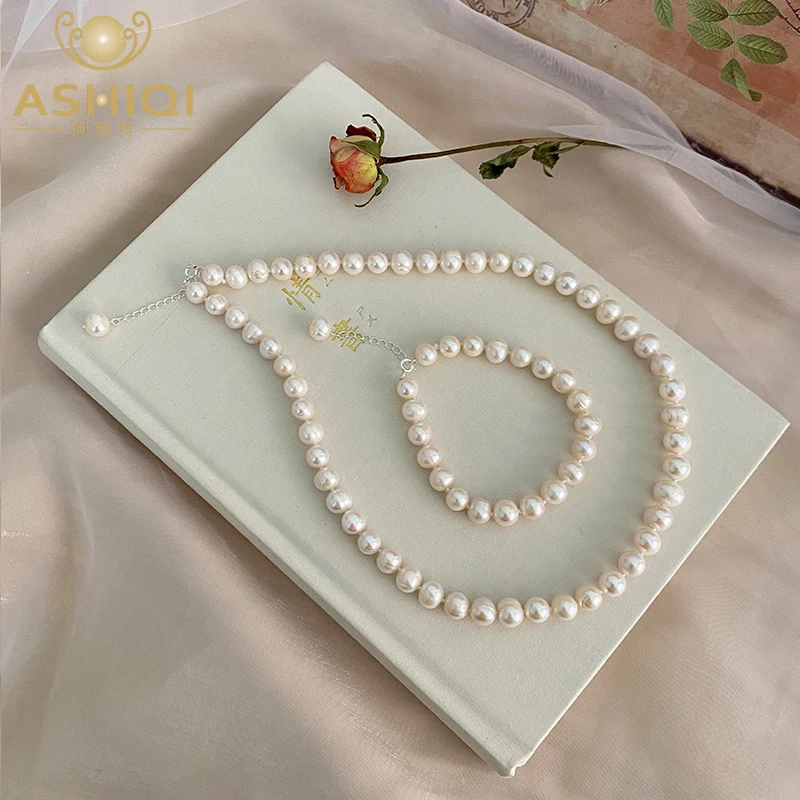 ASHIQI Natural Freshwater Pearl Jewelry Set 925 Sterling Silver Necklace Bracelet for Women
