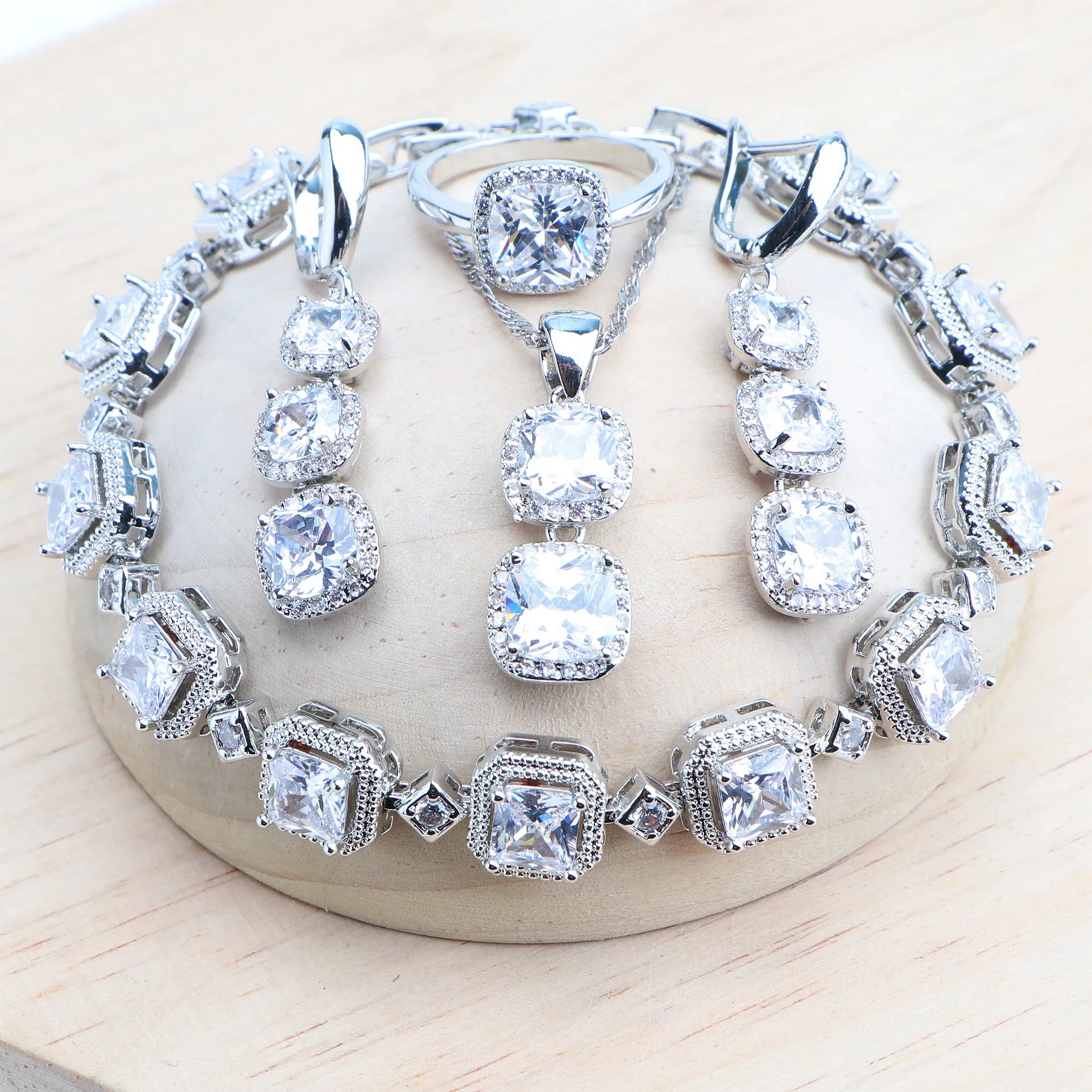 925 Sterling Silver Bridal Jewelry Sets Bracelets Rings Earrings Pendant White Zircon Necklace For Women Set Wedding Jewelry