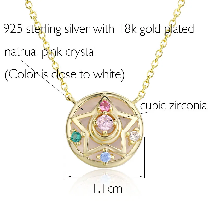 Cute 925 Sterling Silver Gold Color Round Pink Crystal Star Choker Pendant Necklace For Women Girl Heart Of The Universe Jewelry