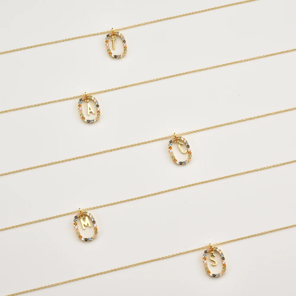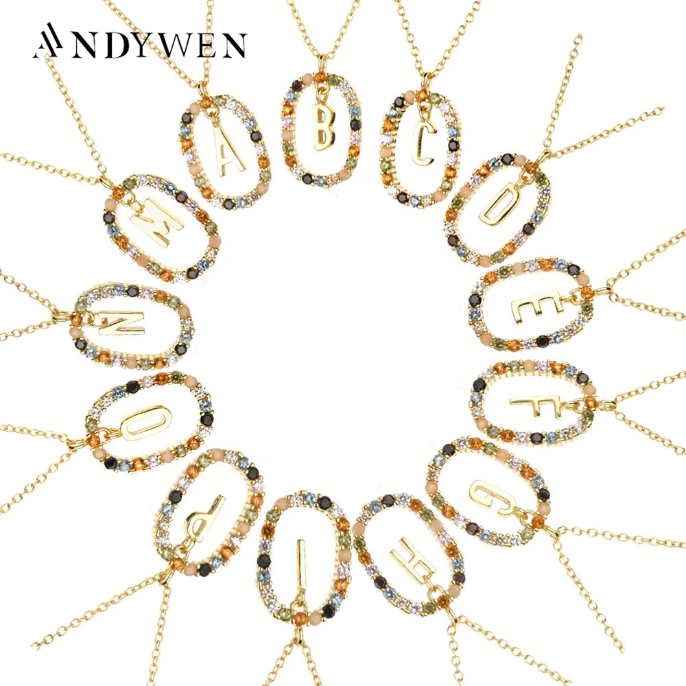 ANDYWEN 925 Sterling Silver Gold 26 Alphabet B J P Letters A M Initial Long Chain Necklace Summer Colorful Zircon Ovals Jewelry