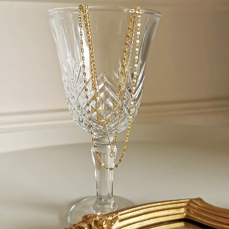 925 Sterling Silver French Simple Crystal Pendant Clavicle Chain Double Necklace Female Classic Fashion Party Jewelry Gift