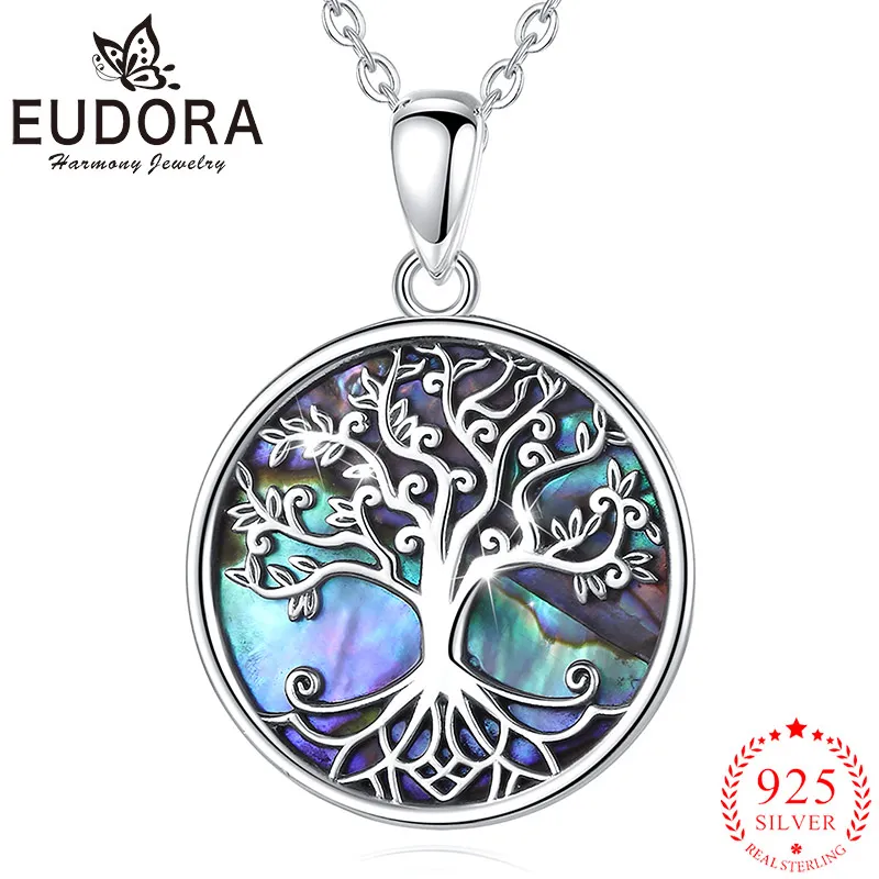 EUDORA New 925 Sterling Silver Tree of Life Pendant Necklace Abalone Shell Jewelry Elegant Fashion Party Gift