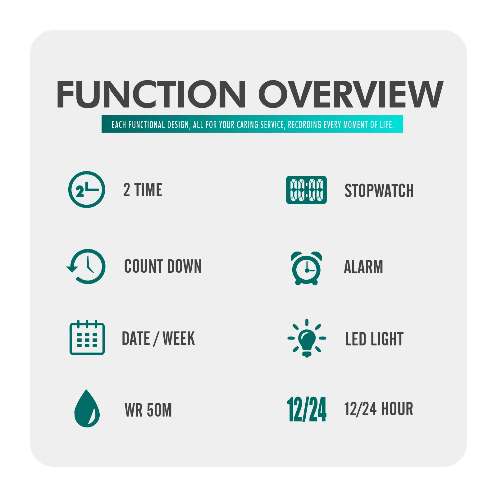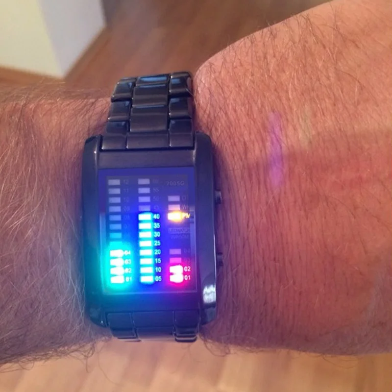 Binary Watch Resistant Watches Men 3ATM Waterproof Alarm Chrono Rectangle Dial Canlender Black Light Tough Structure