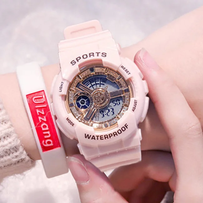 Fashion Men Women Digital Watches Ins Popular Pink Gold Sport Watch for Female LED 5ATM Waterproof Lover Wristwatch Student Gift