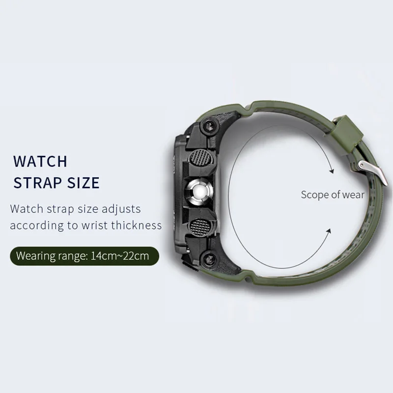 Fashion Quartz Digital Men Watch Dual time Army Green Sport Man Wristwatches reloj hombre Waterproof Led Male Diver Watches Gift