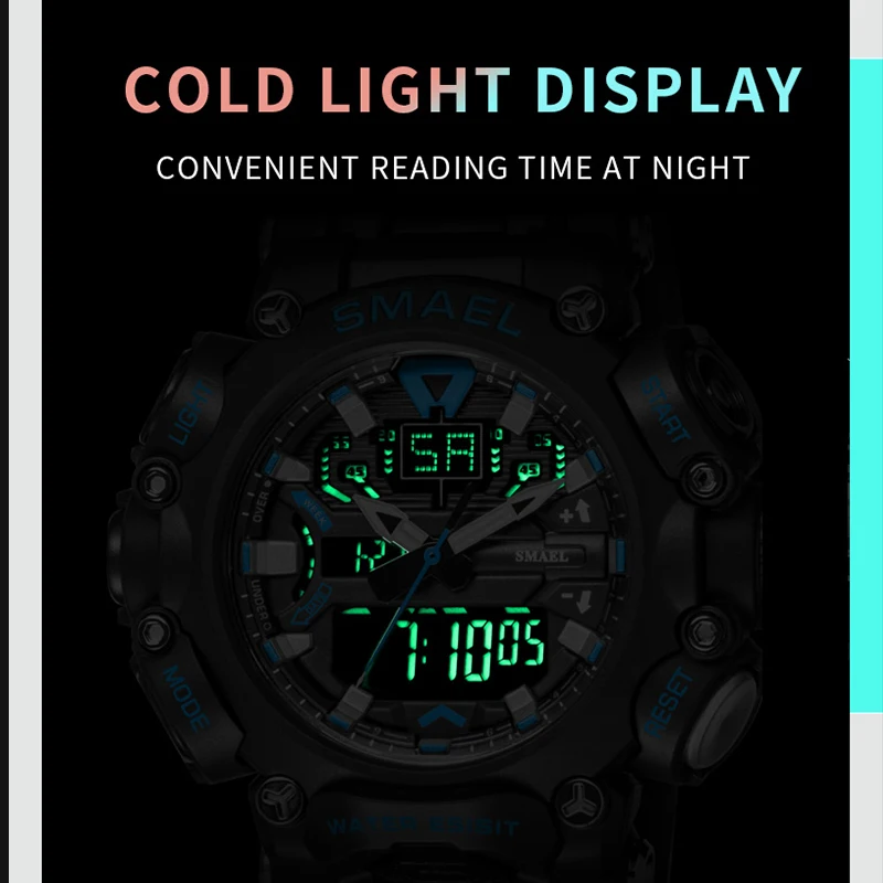 Men Watch Sport SMAEL Watch for Men Original Dual Time Display LED Backlight Electronic Stopwatch 1545 Popular Watches Dropship
