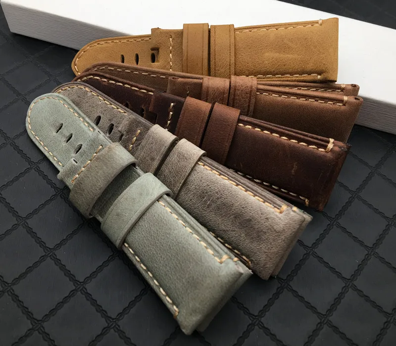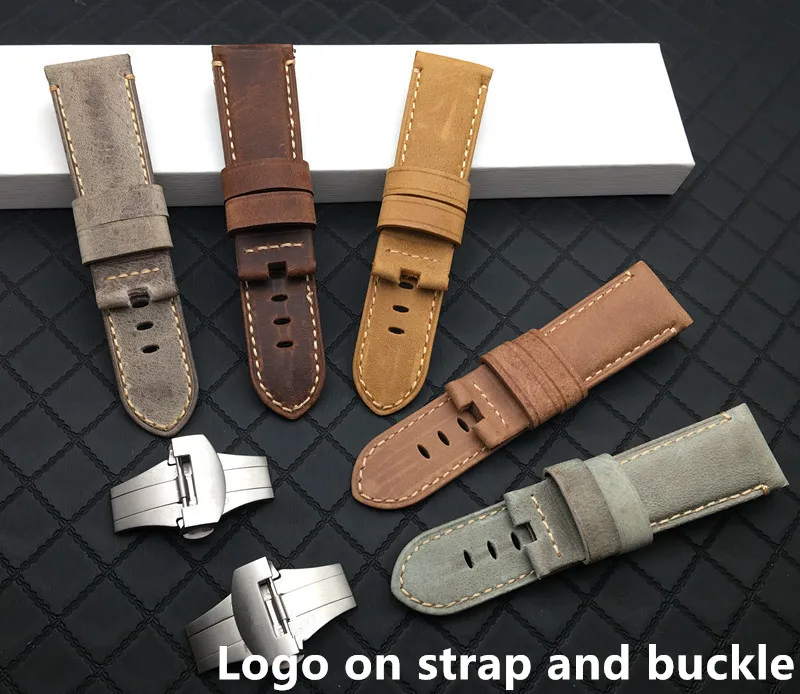 24mm Italian Retro Crazy Horse Genuine Leather Watchband Watch Band Butterfly Buckle For Panerai Strap Belt With Engraving Tools