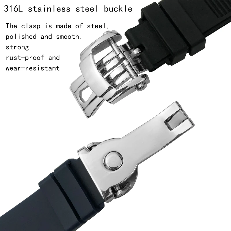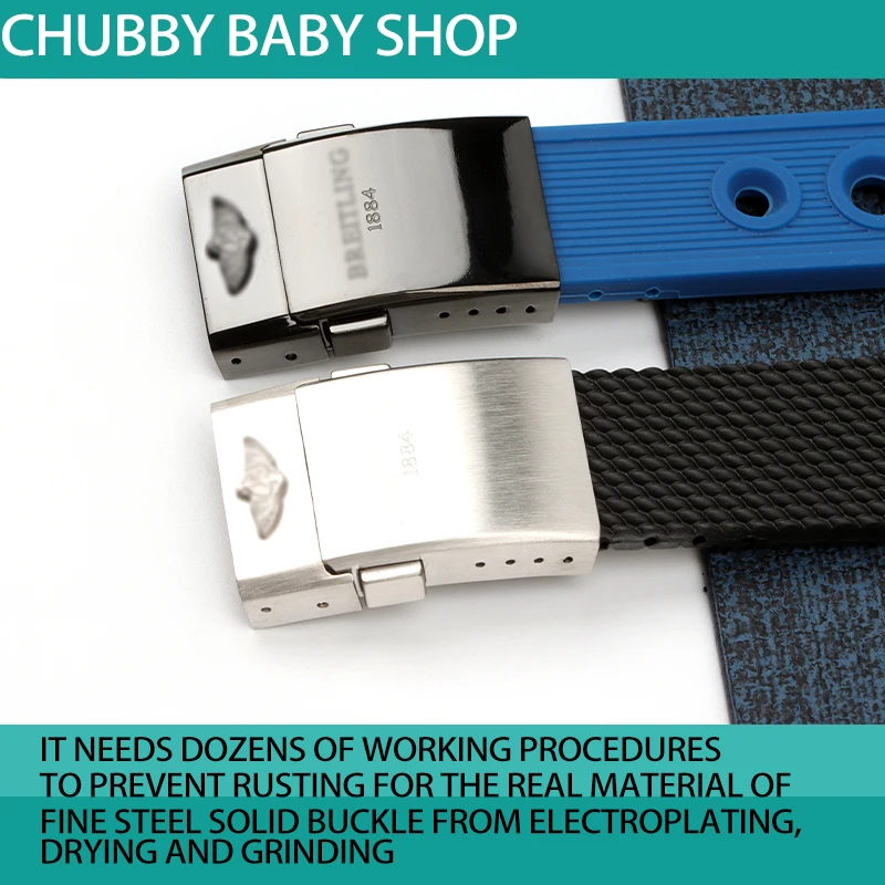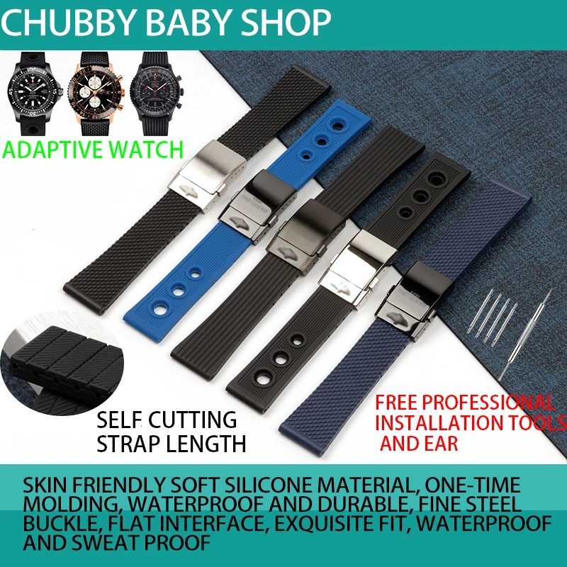 Black blue 22mm 24mm Silicone Rubber Watch band WatchBand Bracelet For navitimer/avenger/Breitling strap butterfly buckle tools
