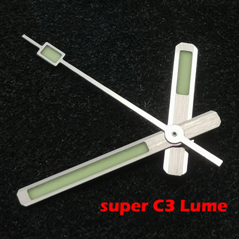 62MAS Solid Watch Hands Fit NH35 NH36 ETA2824 2836 PT5000 ST2130 Movement Japan C3 Super Green Lume Three-dimensional Silver Rim